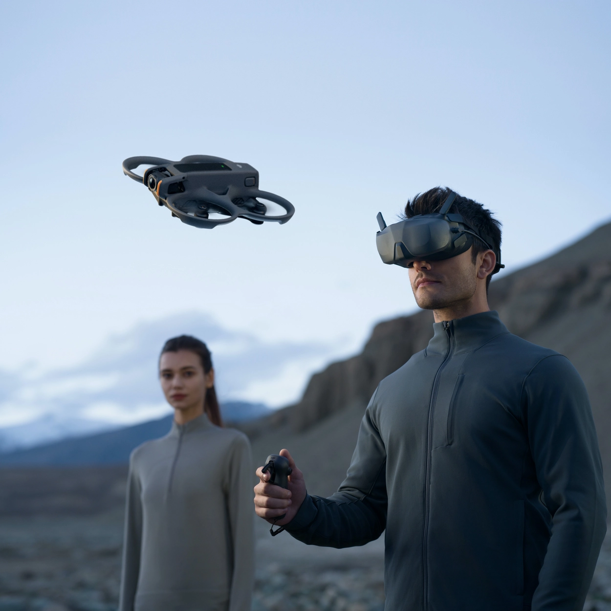 DJI RC Motion 2는 편리하고 빠른 반응 제어 지원해 초보자도 쉽고 빠르게 직접적인 동작 제어로 비행 가능.