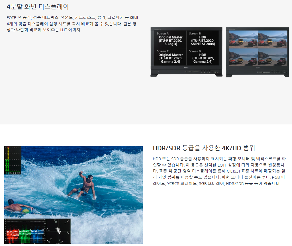 BVM-HX3110 TRIMASTER HX™ 4K 프로페셔널 마스터 모니터로 선명한 디테일과 풍부한 색상을 경험하세요. 매우 어두운 영역부터 밝은 영역까지 놀라운 4K HDR 화질과 IP 연결을 결합하세요. 라이브 프로덕션, 컬러 그레이딩, VFX용으로 완벽한 마스터 모니터를 선택하세요.