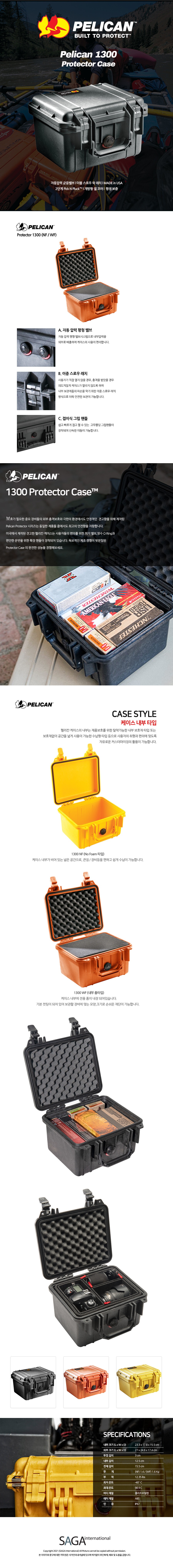 펠리칸 케이스 1300 WF (폼포함) 프로텍터 스몰 카메라 드론 다용도 하드 케이스