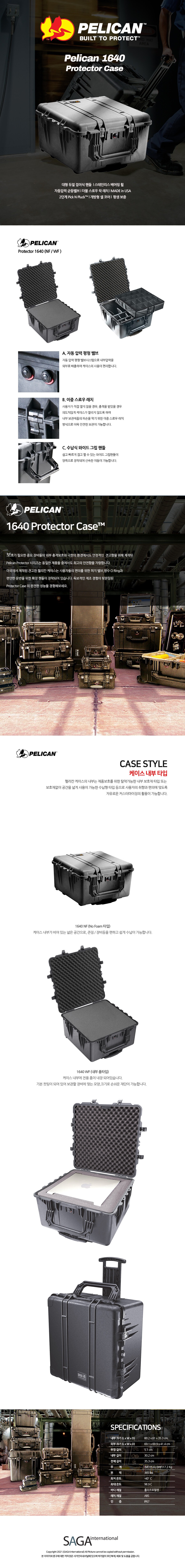 펠리칸 케이스 1640 WF (폼포함) 프로텍터 라지 카메라 드론 다용도 하드 케이스