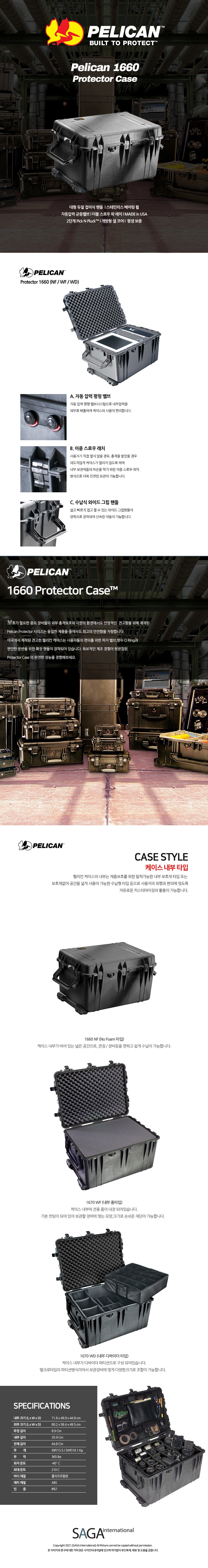 펠리칸 1660 NF (노폼) 프로텍터 라지 카메라 드론 다용도 하드 케이스
