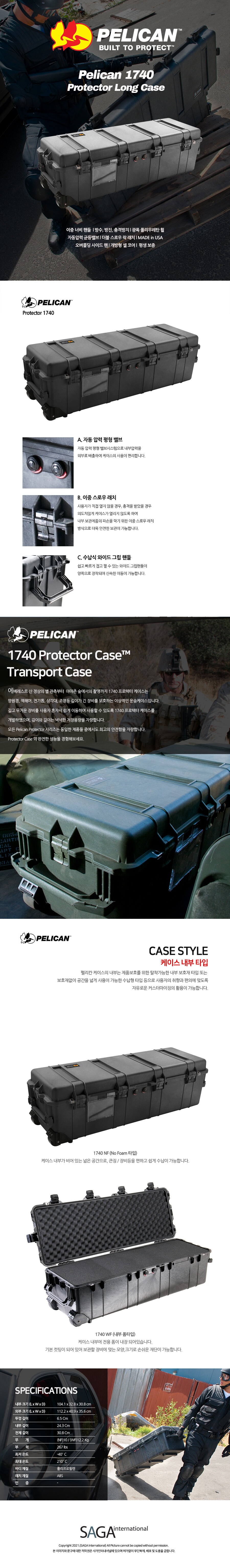 펠리칸 1740 NF (노폼) 프로텍터 카메라 드론 다용도 하드 케이스