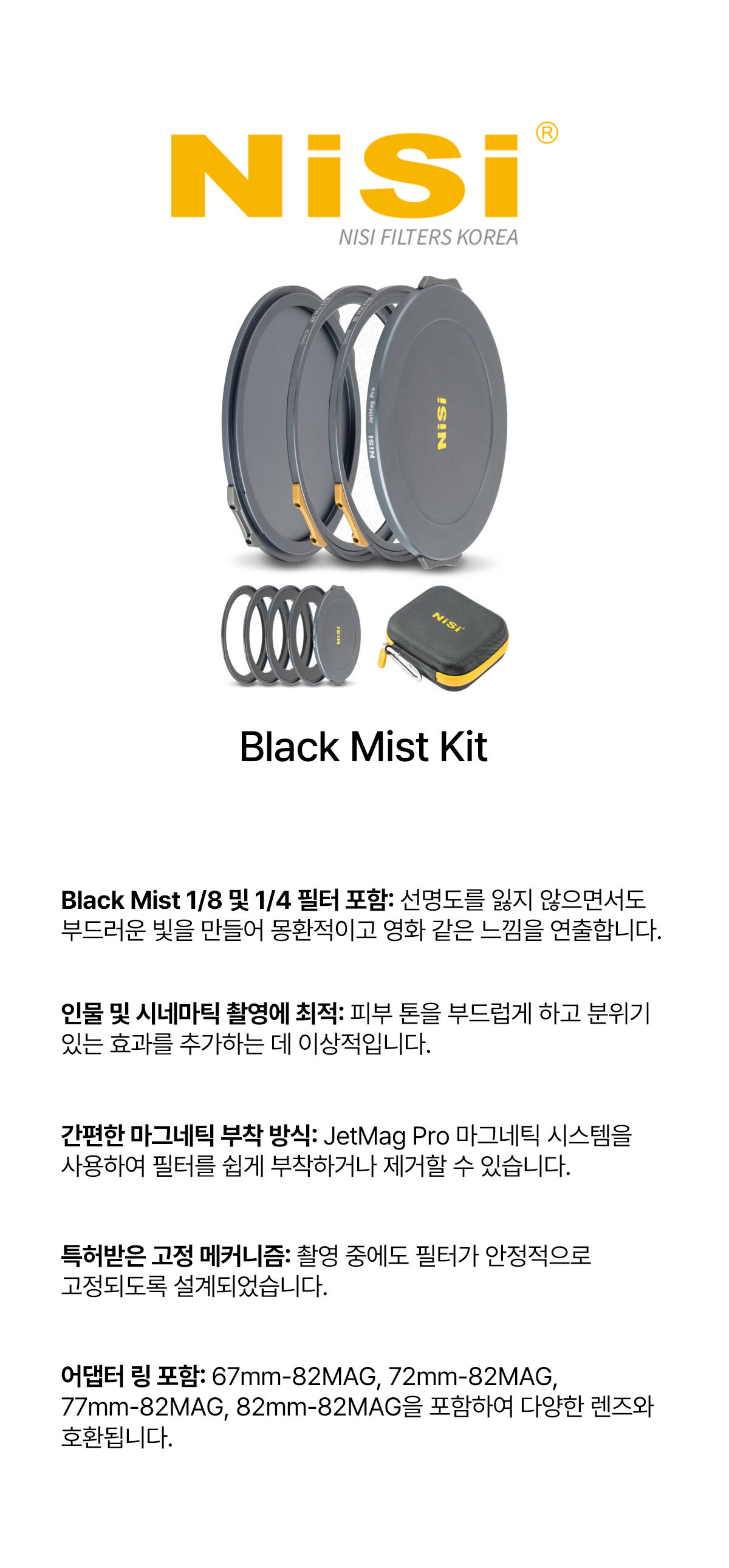 [NiSi Filters] 제트맥프로 블랙미스트 킷 82MAG Black Mist Kit - JetMag Pro 82MAG - Black Mist 1/4 +Black Mist 1/8 - 67/72/77/82mm ring 2pcs, front cap 1pcs, back cap 1pcs, filter bag