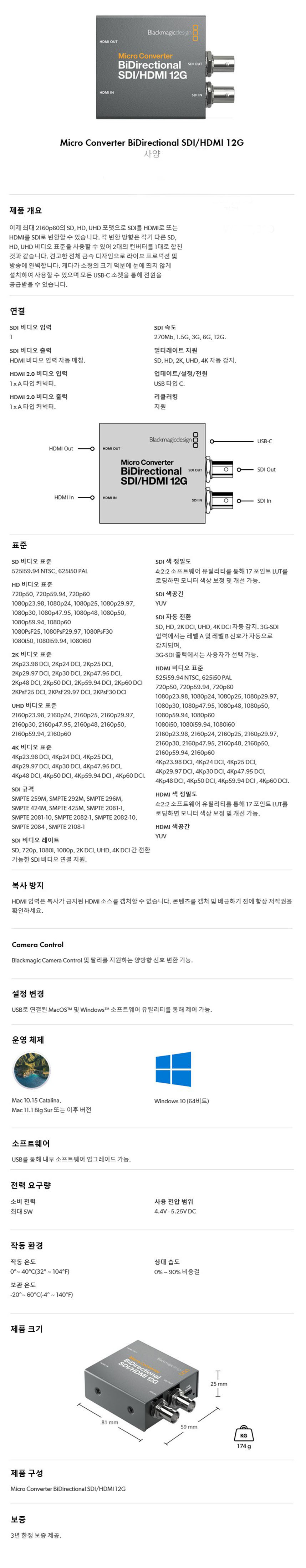 Micro Converter BiDirectional SDI/HDMI 12G [아답터 없음]
