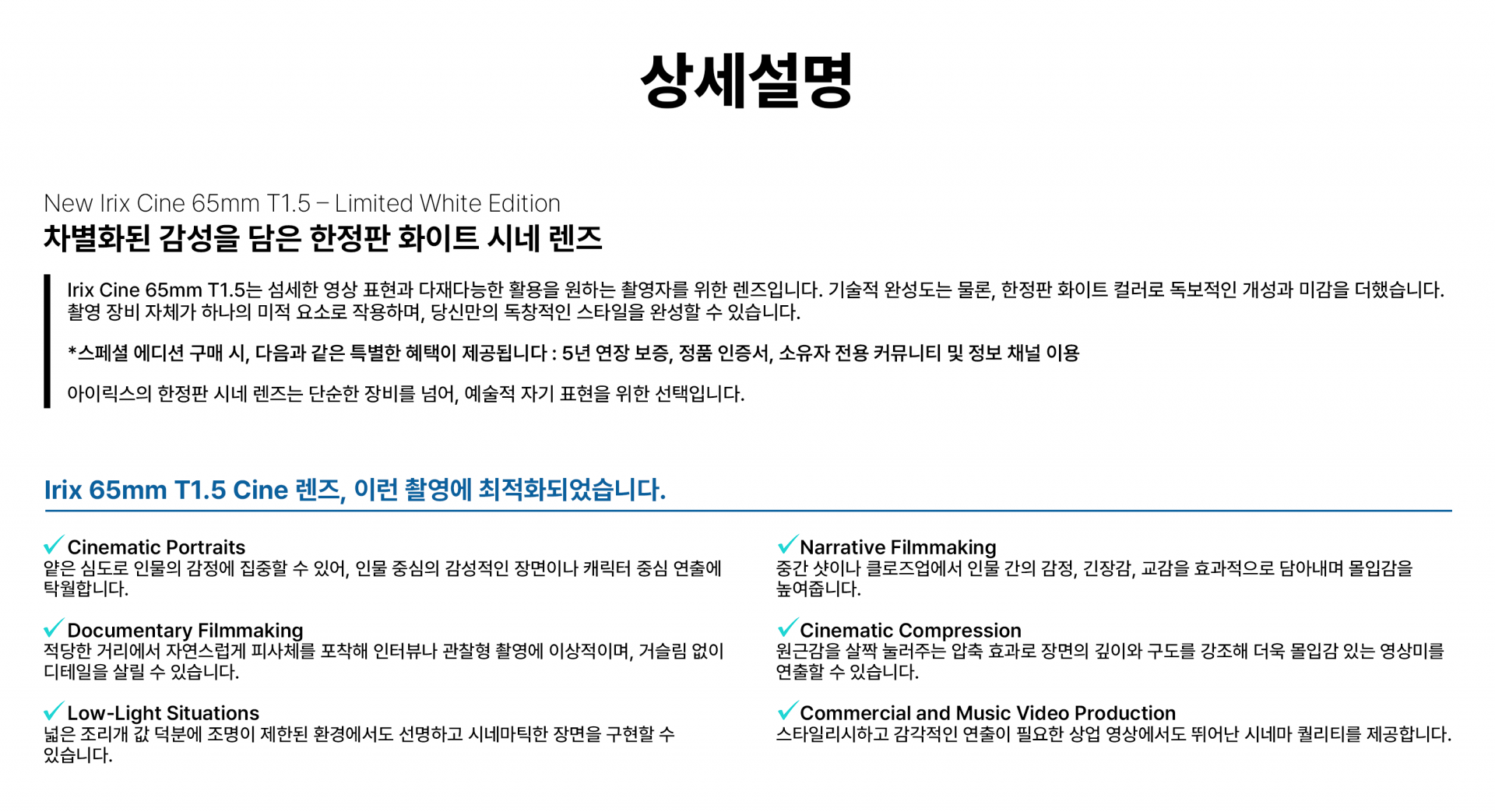 아이릭스 Irix Cine Lens 65mm T1.5 White ( Sony E / Canon RF / Canon EF / PL-mount )