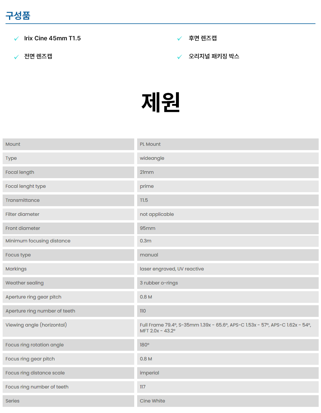 아이릭스 Irix Cine Lens 21mm T1.5 White ( Sony E / Canon RF / Canon EF / PL-mount )