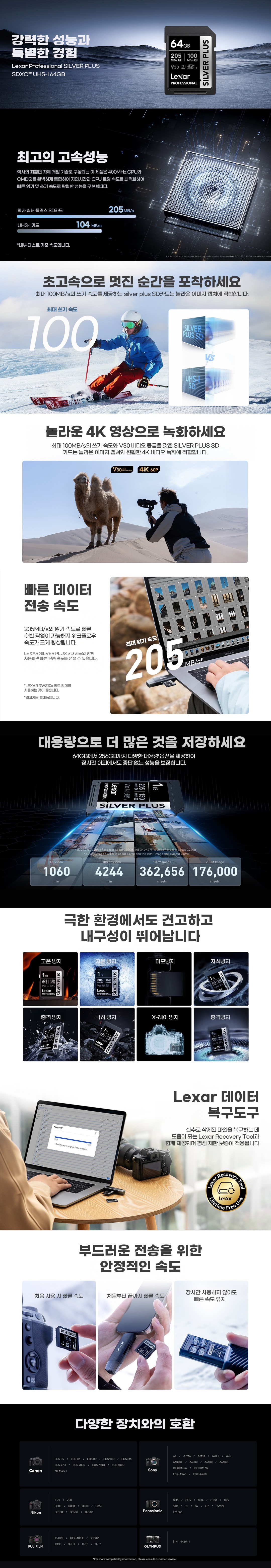 렉사 Lexar 실버 플러스 SD 메모리카드 Professional SILVER PLUS SDXC UHS-I 64GB 4K SD카드