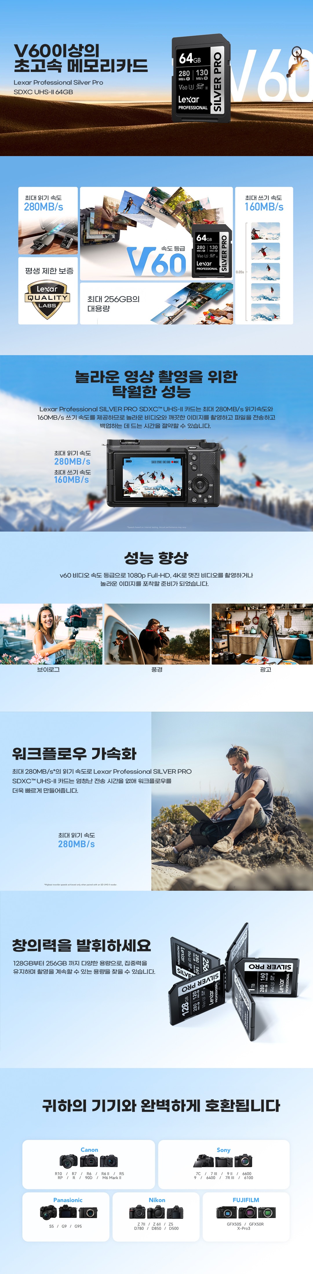 렉사 Lexar 실버 프로 SD 메모리카드 Silver Pro SDXC UHS-II 64GB V60 SD카드