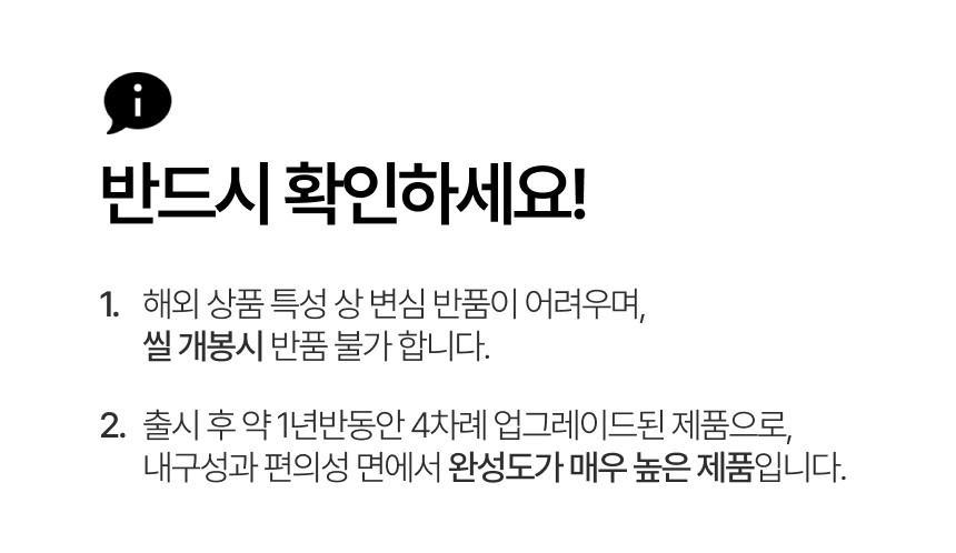- 상품 설명에 별도의 교환/반품이 고지된 상품은 해당 상품 내용에 따라 처리되오니, 이 점 꼭 확인하시기 바랍니다.