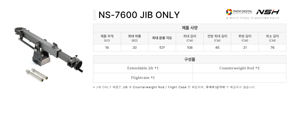 JIB ONLY 제품은 JIB 과 Counterweight Rod / Flight Case 만 제공되며,