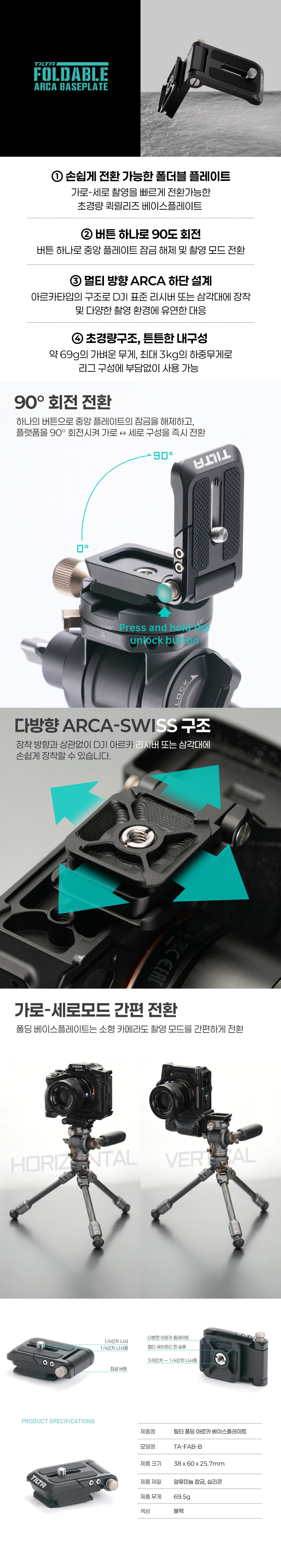 TILTA 틸타 TA-FAB-B 접이식 아르카 베이스 플레이트 블랙
