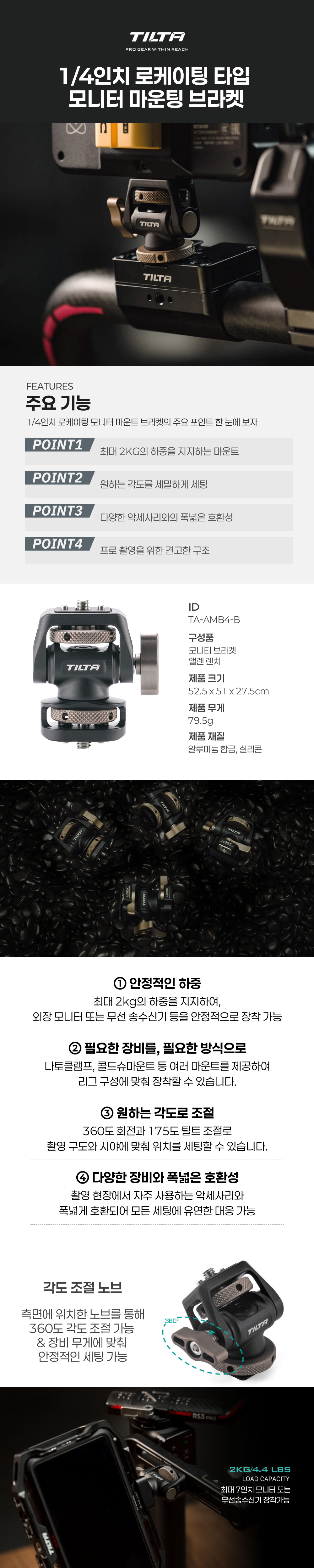 TILTA 틸타 TA-AMB4-B 1/4인치 로케이팅타입 모니터 마운트