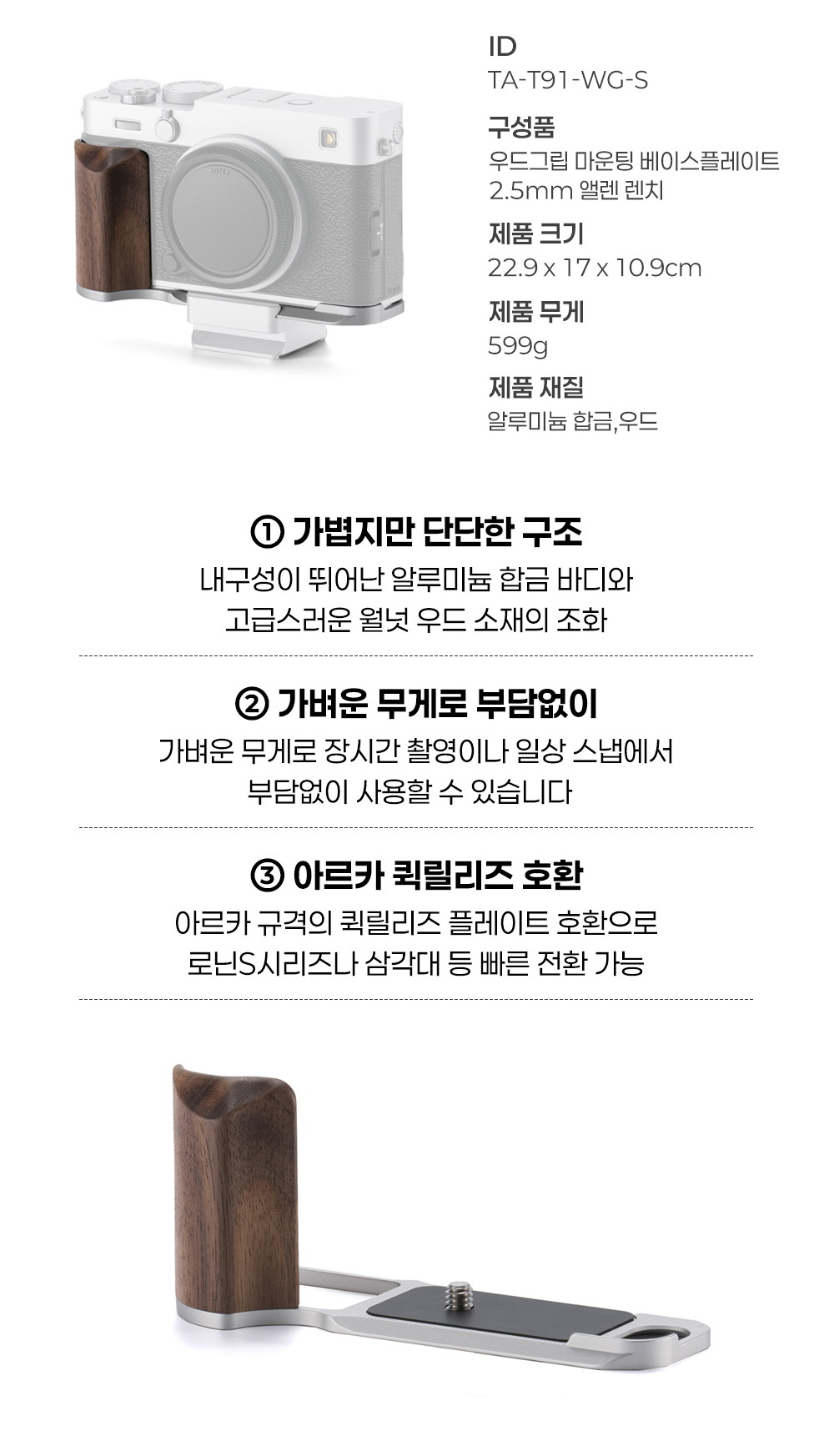 TILTA 틸타 TA-T91-WG-S 후지필름 X-E5 베이스 플레이트 우드 그립 실버