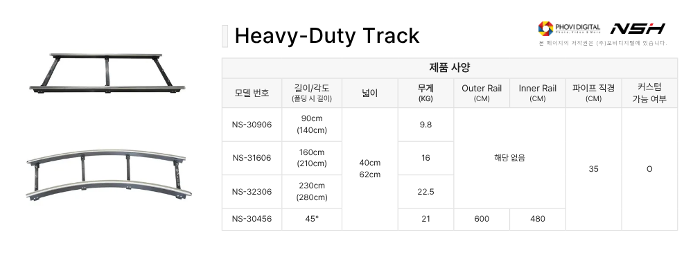 직선 Heavy Duty Rail ( NS-30906,31606,32306 ) 외에는 폴딩이 불가능 합니다.