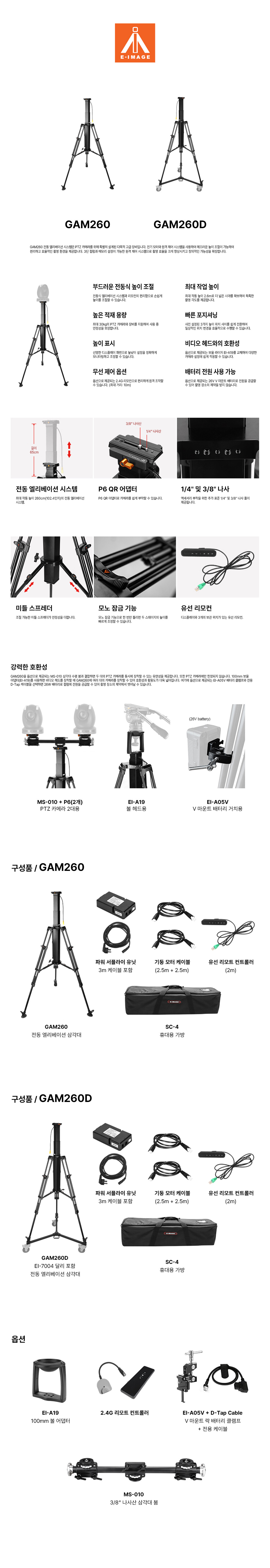 [E-IMAGE] 이이미지 GAM260 GAM260D 전동 엘리베이션 삼각대